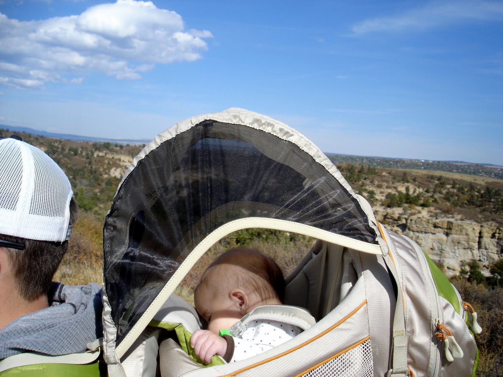 Sunday Janelle and I went on a hike with Kate and Kiya. It was a great day to get out even though it was a bit cooler than what we have been used to. Unfortunately we have not been able to hike much this summer with Janelle being sick throughout her entire pregnancy so it was nice to get out and enjoy some time outdoors together. I miss spending that time with her and Kate certainly adds a new level of adventure to it. We did get the opportunity to break out the new Kelty pack that Dad and Bobbi got us as a baby gift. Not too excited for a photo…Kate was though.